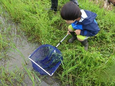 農薬不使用の田んぼに入り、手作業で雑草を除去します。また田んぼの生きものを探し観察します。*同じ田んぼで5/24に田植え、9月20日に稲刈りを行います。田植え、草取り、稲刈りのうち、2回以上の参加で、この田んぼでとれたお米のプレゼントがあります。