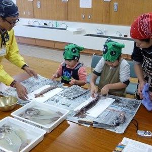 能登の定置網などでとれた魚の体の特徴を学び料理を作ります。