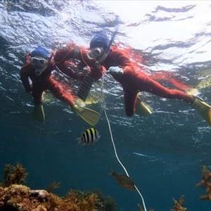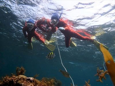 透明度抜群の能登の海にウェットスーツを着て入り、様々な海の生きものを観察します。スノーケリングの基本的な技術と適切な磯生物の観察法も解説します。