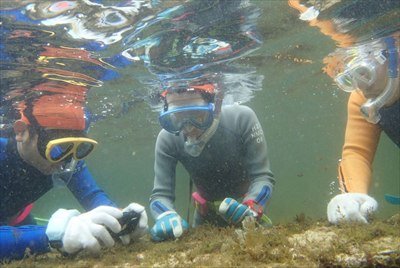 センター等で開催されるスノーケリング事業における指導者の養成プログラムです。磯の自然や生きものに関する講義や実習などを通じて、指導者として必要な知識や技術などを深めていただきます。