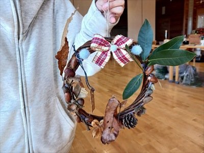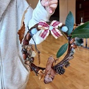 園内の木の実や松ぼっくりなどを使って自分だけのクリスマスリースをつくろう!