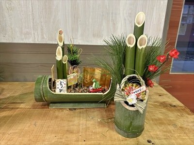 竹を使って門松づくり