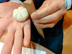 粟森梅月堂さん指導で3種の上生菓子作り体験(ザリガニ、七夕、ひまわりの練り切り)