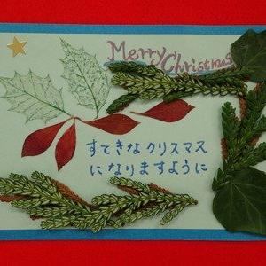 ヒイラギの葉脈標本を作り、葉脈標本と押し葉でクリスマスカードを作ります。葉脈標本は、葉肉を取り除いて、葉脈だけにしたものです。細かい葉脈だけになったヒイラギの葉はきれいで、クリスマスカードの飾りにぴったりです。