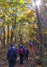 ミズナラ、コナラ、ハウチワカエデ等の彩りを感じながら散策します。散策路は歩きやすく、ゆっくりと紅葉を楽しめます。